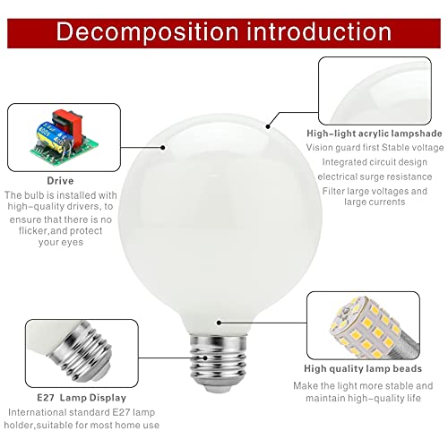JiuRui LED Lampadine Lampadina a LED E27 5W A60 G80 G95 G125 G20 G85 G125 Lampadina Edison VETRO MILDA 220V-240V Globe Bulb Bulb Bulb Freddo/caldo Lampada a LED bianca (Colore: G125 Cold White)