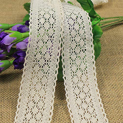 Jixista Metro Nastro di Pizzo Nastro in Pizzo di Cotone in Stile Vintage Merletto Beige Stile Vintage Pizzo Floreale Bordo Taglio Nastro per Artigianato Abbigliamento e Accessori da Sposa Decorazione