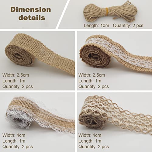 Jizxol 8 rotoli di nastro di iuta con pizzo, nastro di iuta naturale, decorazione per la casa con corda di canapa da 20 m, decorazione vintage per fai da te, matrimoni, feste, bricolage