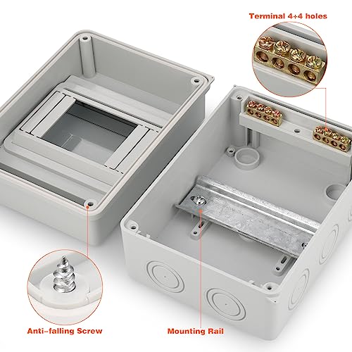 JIZZU HT-5 Scatola Interruttore Automatico, IP65 Morsettiera Scatola di Distribuzione con Terminale e Morsettiera DIN per Interruttore Magnetotermico, per Parete Interna