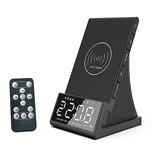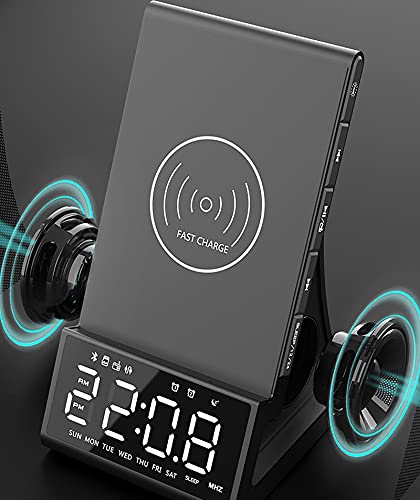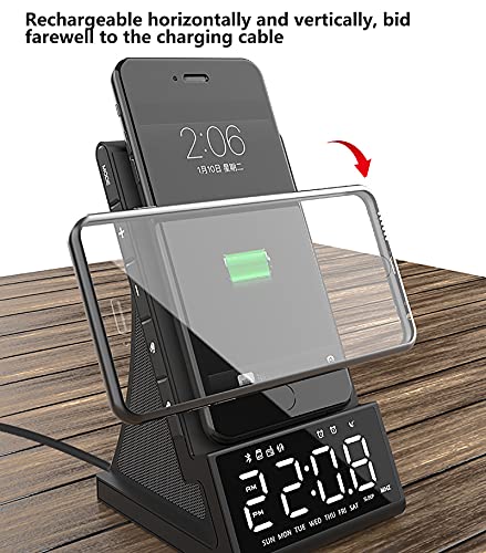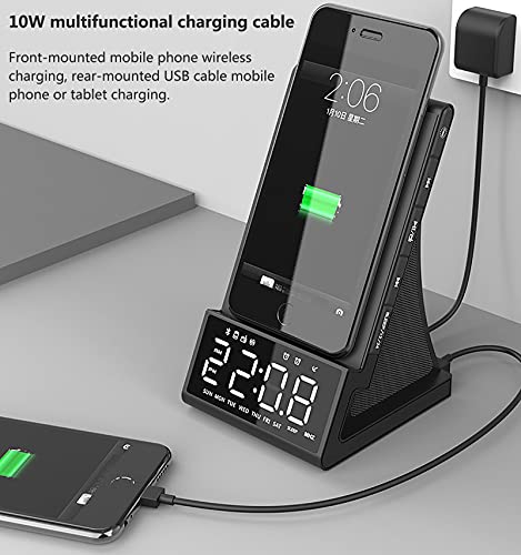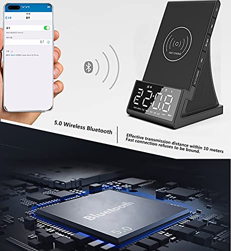 Jjff Sveglia Digitale con Ricarica Wireless, Sveglia da Comodino con Altoparlante Bluetooth, Porta USB alimentata utilizzata Come Caricatore USB, Ampio Display a LED con Data