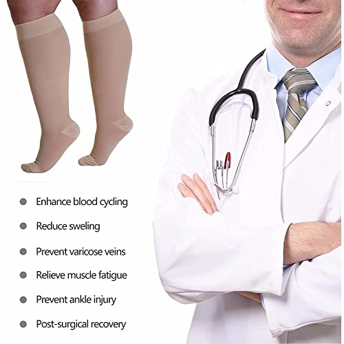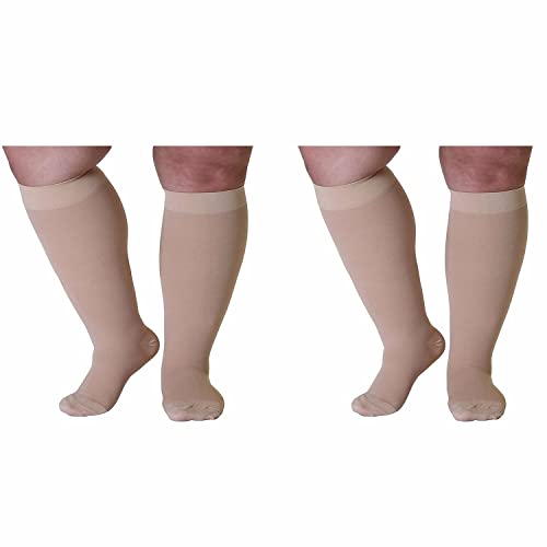 JJGS 2 Paia Calze a Compressione Graduata - Polpacci Larghi, Anti Trombosi 20-30mmHg, Taglia XL Plus, per Uomini, Donne, per Ogni Giorno, Sport, Infermieri, Gravidanza, Voli Flesh-XXXL