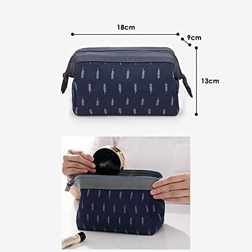 JJPRIME - 1 x [Foglie] Borsa da viaggio cosmetica piccola, organizer per custodia con cerniera, 18x13x9cm (blu scuro)