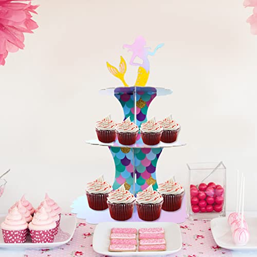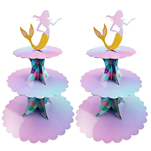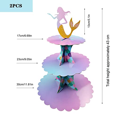 JJQHYC 2 Pezzi Alzata per Cupcake 3 Piani Supporti per Cupcake in Cartone Tema Sirena Torre da Dessert per Compleanni, Feste