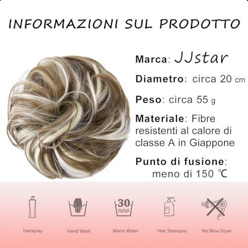JJstar Grande Chignon Finto per Capelli, Chignon Facile per Capelli Elastico Capelli Finti Ondulato Capelli Veri Coda di Cavallo Pezzo di Capelli Spessi Updo per Donne Ragazze