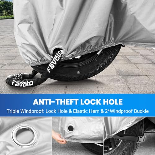 【PORTATILE DA ESTERNO】: questa copertura per moto è leggera, portatile e facile da installare. Fondo anteriore: foro di blocco antifurto + fibbia posteriore inferiore antivento