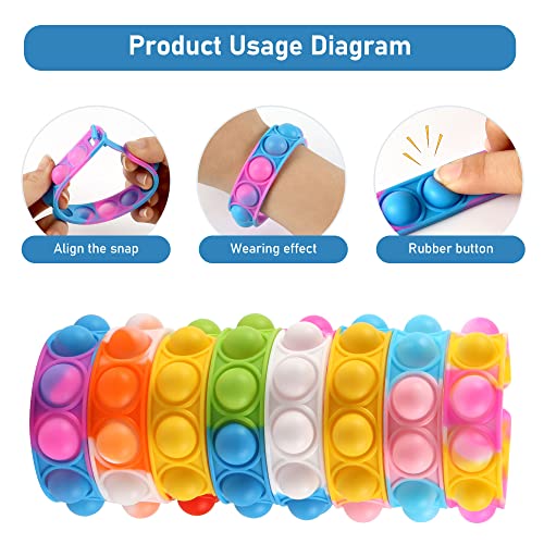 JKDHJK 16 pezzi Bracciale in Silicone Fidget Toy Antistress Braccialetto Bracciali Pop Up Regolabile Sensoriale Multicolore Push Bubble Bracelets Antistress Braccialetto per Bambini Adulti