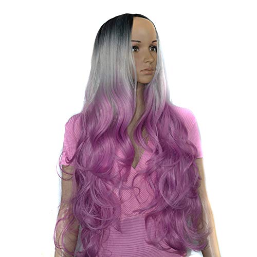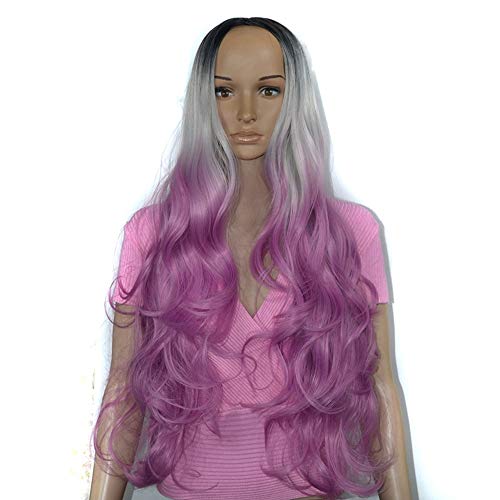JKHOIUH Parrucca Fuxia lunga con capelli ricci medi Parrucca per anime (Colore: Fuchsia, Size: 85cm)