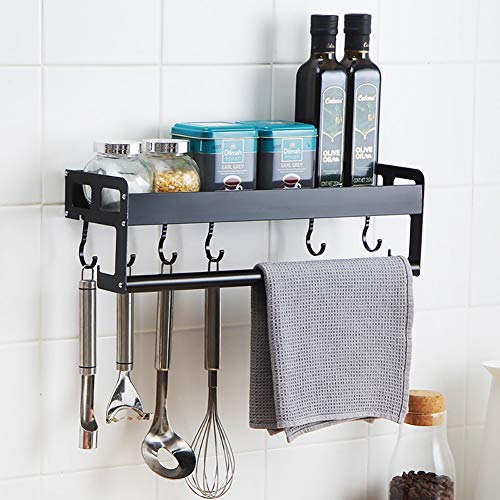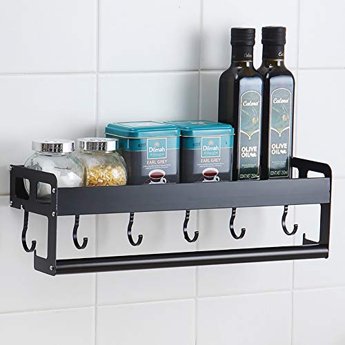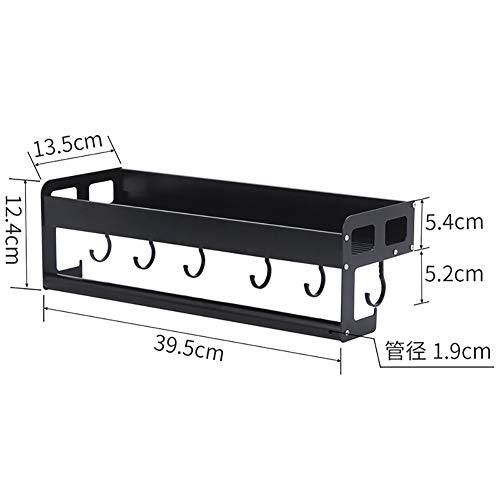 JKMQA Mensole Cucina,Porta Utensili da Cucina con 6 Gancio,Barra Portautensili Cucina,Porta Mestoli da Cucina con Colla Brevettata,Spazio in Alluminio,Anodized Surface,39 cm (Nero)