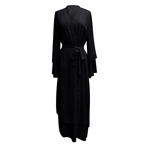 JKRTR Abaya - Vestito da donna a maniche lunghe, stile etnico, con chiusura lampo in stile musulmano, Abaya, abito da sera, islamico, Nero, M