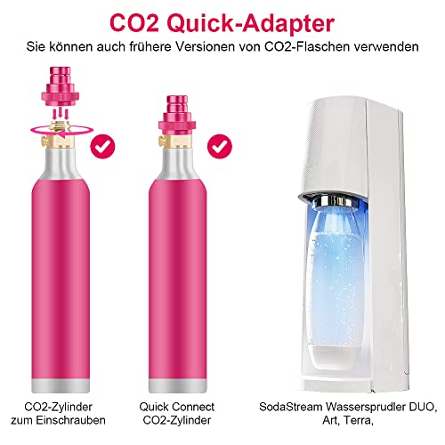 JKUSS CO2 Adattatore Rapido Compatibile con Gasatore d'acqua SodaStream Duo, Quick Connect QC, Art, Terra, 425g 60L Filettatura trapezoidale TR21-4 - Rosa