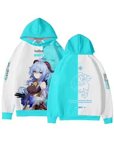 JKYP Gioco Genshin Impact Character Ganyu Cosplay Felpa con Cappuccio, Pullover Casual Unisex con Stampa 3D per i Fan di Ganyu,Ganyu,S