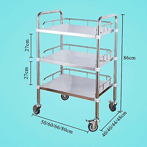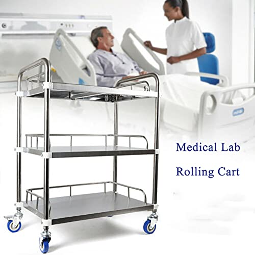 JMCAJIE Carrello da Laboratorio,Carrello di Stoccaggio,Carrello Estetista, 3 Strati Carrello Medico in Acciaio Inox, con 4 Ruote A 360 °e 2 Freni per Ospedale, Farmacia E Estetica,Argento