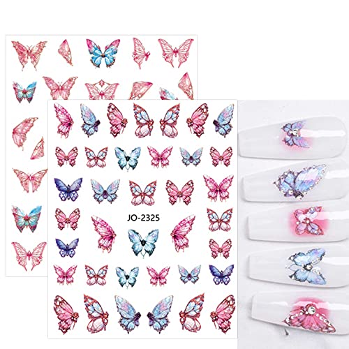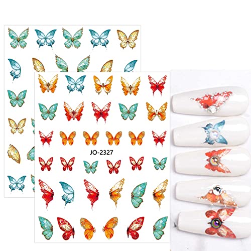 JMEOWIO Farfalla Colorata Adesivi Unghie Nail Art 12 Fogli Stickers Unghie Autoadesivi Decorazioni Unghie Nail Art Disegni