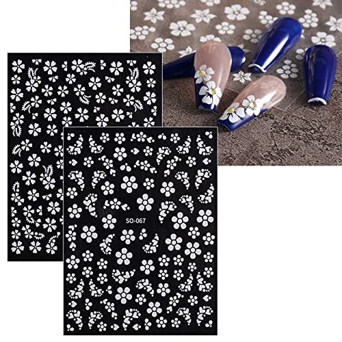 JMEOWIO Fiore Bianco Primaverile Adesivi Unghie Nail Art 10 Fogli Stickers Unghie Autoadesivi Decorazioni Unghie Nail Art Disegni
