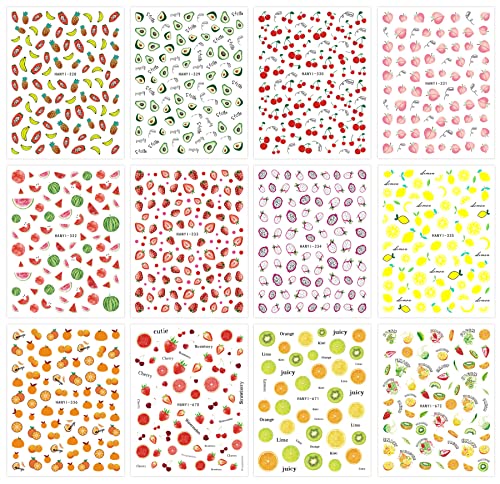 JMEOWIO Frutta Adesivi Unghie Nail Art 12 Fogli Stickers Unghie Autoadesivi Decorazioni Unghie Nail Art Disegni