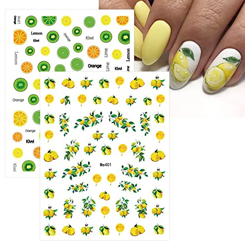 JMEOWIO Frutta Estiva Limone Adesivi Unghie Nail Art 12 Fogli Stickers Unghie Autoadesivi Decorazioni Unghie Nail Art Disegni