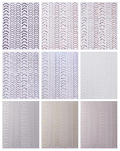 JMEOWIO Linea di Punta Francese Adesivi Unghie Nail Art 9 Fogli Stickers Unghie Autoadesivi Decorazioni Unghie Nail Art Disegni