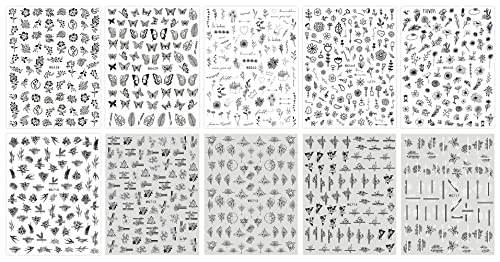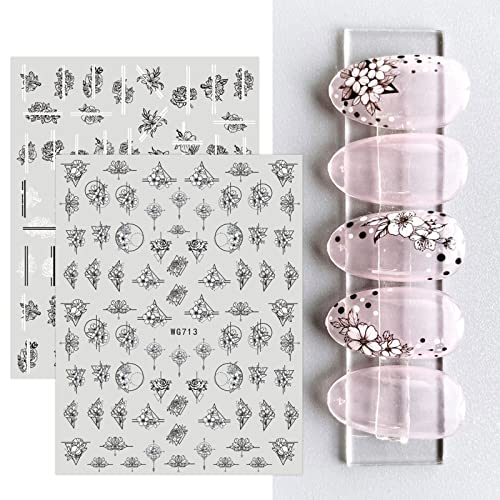 JMEOWIO Primavera Fiore Bianco Nero Adesivi Unghie Nail Art 10 Fogli Stickers Unghie Autoadesivi Decorazioni Unghie Nail Art Disegni