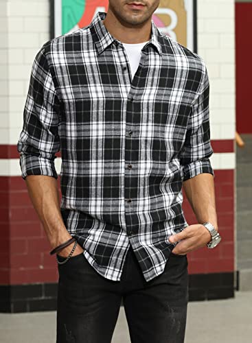 ABBIGLIAMENTO COPPIA: le camicie in flanella scozzese a maniche lunghe da uomo si abbinano bene a magliette, jeans, pantaloncini e blazer solidi. Camicie da uomo a manica lunga slim fit con classico colletto rialzato, giacca leggera perfetta per jeans, pantaloni cargo e jogger, possono indossare anche gilet o t-shirt all'interno