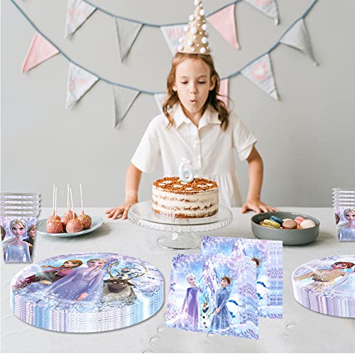 JMOCD Elsa Set di stoviglie per feste, 81 pezzi, decorazione per feste di compleanno, piatto, tovagliolo di carta (set di piatti di carta Anna ragazza)