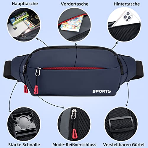 JMQYS Marsupio per uomo e donna, sportivo, impermeabile, cintura da corsa, borsa a tracolla, per attività all'aperto, jogging, campeggio, escursionismo, fitness, viaggio, Marsupio sportivo(blu navy)