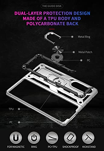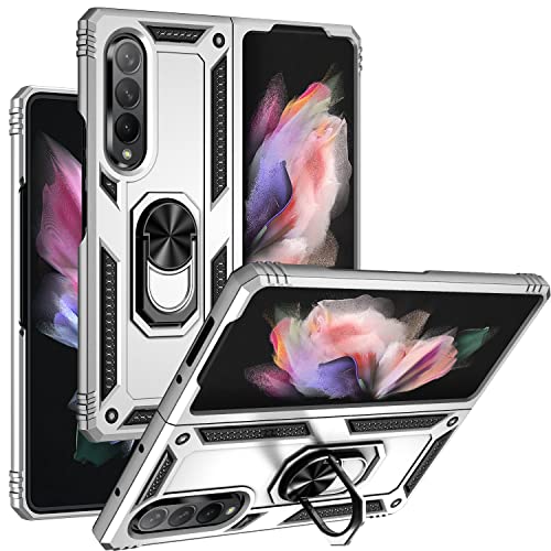 JMstore Cover Compatibile con Samsung Galaxy Z Fold 3,Anti-Drop Custodia Anello Supporto Girevole (Argento)
