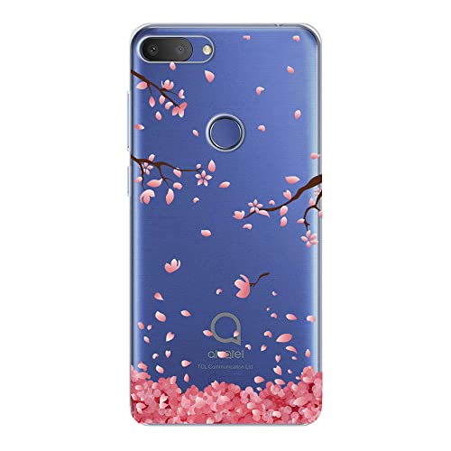 JMTALL 3X Cover Trasparente per Alcatel 1S 2019 Sottile e Leggero Slim Silicone Morbido Custodia Creativo Design Fiore di Ciliegio Dente di Leone Ragazzo Ragazza Bumper Case