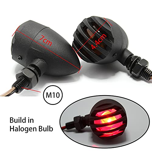 【Alta luminosità】 Gli frecce moto integrati nella lampadina alogena da 5 W, molto più luminosi della luce di fabbrica, forniscono un'emissione luminosa più brillante, rendono la guida più sicura. Lo stile proiettile migliora l'aspetto retrò della tua moto con questi indicatori di direzione personalizzati.