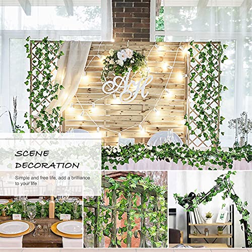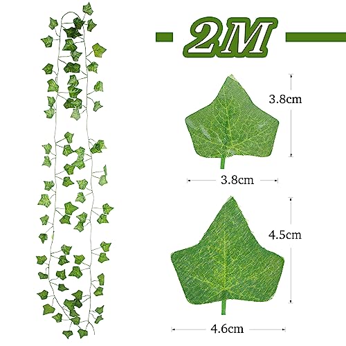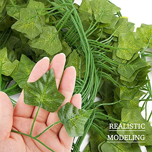 Effetto realistico: Le foglie sono dotate di una produzione eccellente del mestiere di laminazione, così gli steli sono integrati perfettamente nelle foglie per prevenire la caduta delle foglie. Le piante di edera artificiali sono di colore verde vivace, non si sbiadiranno facilmente. L'edera artificiale è piena di vitalità, sembra molto reale e naturale come qulle vere.