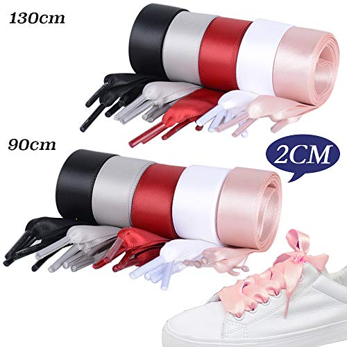 JNCH 10 Paia Lacci per Scarpe in Raso Stringhe Piatti Nastro Colorati Donna Ragazze (90cm, 130cm)