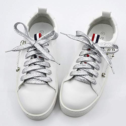 JNCH 3 Paia Lacci per Scarpe Stringhe Piatti Colorati Argento Glitter (90cm, 110cm, 130cm)