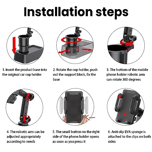 【Compatibilità】: Il supporto per telefono per auto si adatta alla maggior parte degli smartphone, si adatta a smartphone con dimensioni dello schermo da 1,8-3,4 pollici, la dimensione adatta del portabicchieri è entro 70 mm, inserendo il portabicchieri basta ruotare la paletta in senso orario per espandere la dimensione dell'adattatore inferiore e fissare saldamente la base.