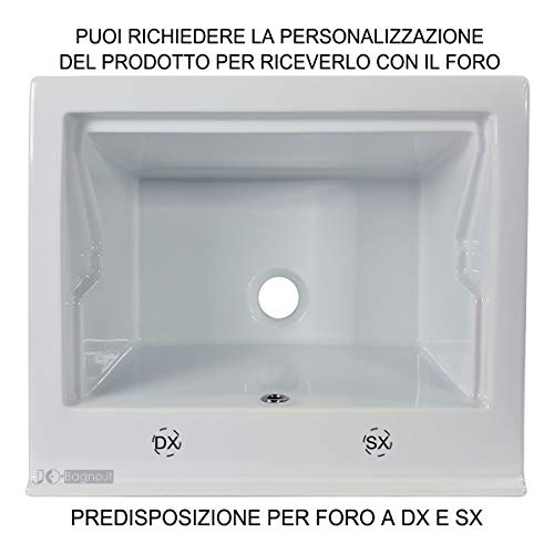 Jo-Bagno.it LAVATOIO PILOZZO Ceramica 60 x 50 Tutta Vasca per Top O Mobile da Incasso O Installazione con STAFFE Anche in Esterno Incluso di PILETTA in Acciaio E SIFONE