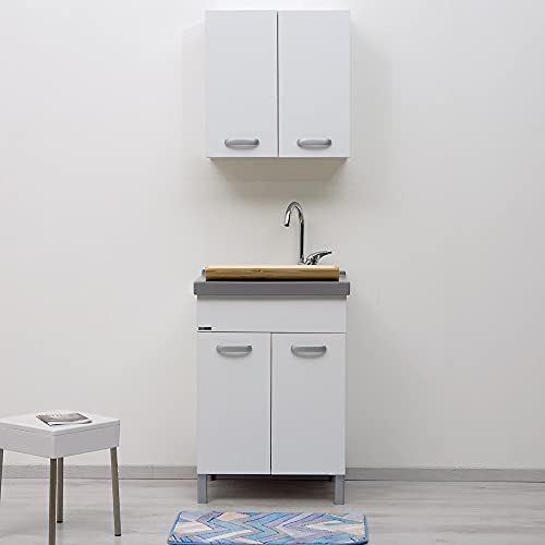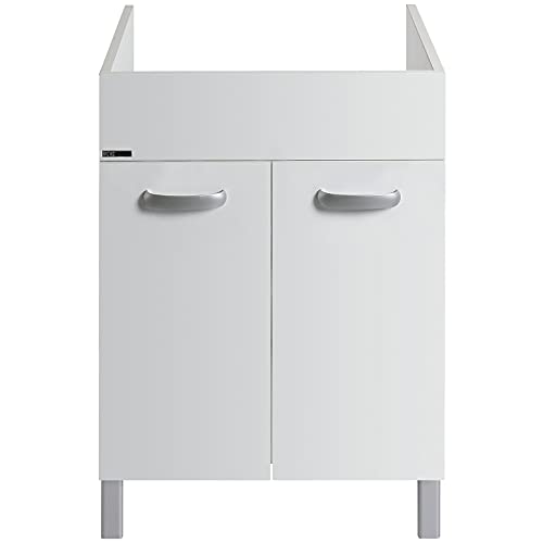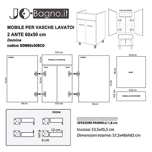 Jo-Bagno.it Mobile Lavatoio Lavanderia 60 x 50 x 82H in Legno Bianco da 1.8 cm per Lavatoio in Ceramica e Resina Pvc Incasso Vasca 53,5 x 45,5 DOMINA