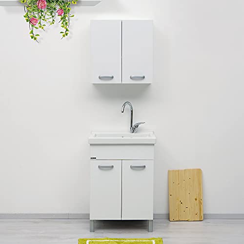 ✅ MOBILE BASE COMPATIBILE con le più COMUNI PILOZZE LAVATOIO IN CERAMICA e RESINA PVC realizzato in Legno NOBILITATO BIANCO ideale per INTERNO, in Lavanderia, Garage