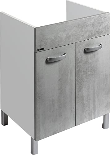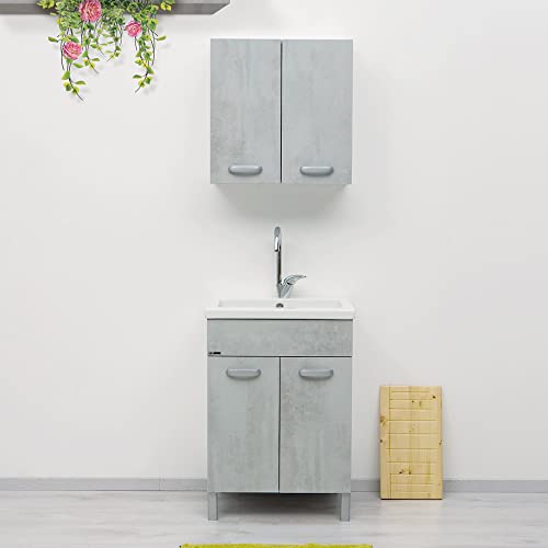 Jo-Bagno.it Mobile Lavatoio Lavanderia Mix 60 x 50 x 82H in Legno da 1.8 cm per Lavatoio in Ceramica e Resina PVC Incasso Vasca 53,5 x 45,5 DOMINA (Bianco/Cemento, legno)