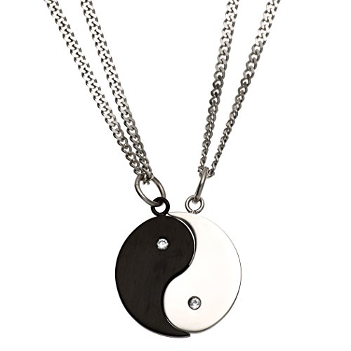 JOBO Collier Ying Yang 4-pezzi acciaio inox 2 zirconia neri rivestimento-PVD