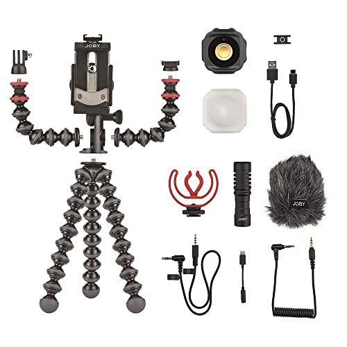 JOBY GorillaPod Mobile Vlogging Kit (Supporto Smartphone, Microfono Wavo Mobile, Luce LED Beamo Mini), Treppiede Flessibile, Treppiede Smartphone con Luce, Treppiede Gopro, Vlogging, Streaming