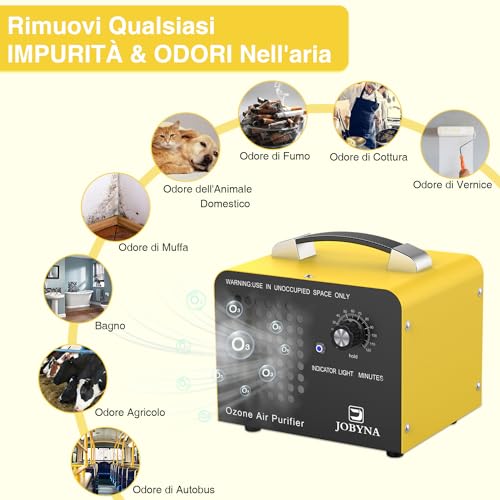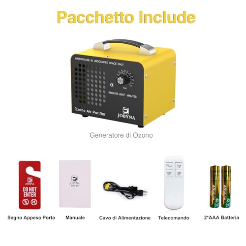 JOBYNA 10,000mg/h Generatore di Ozono Auto con Telecomando, Ozonizzatore Purificatore d'Aria Ozono O3 con Timer, Odor Remover per Abitazioni, Uffici, Garage, Auto, Fumo e Animali domestici
