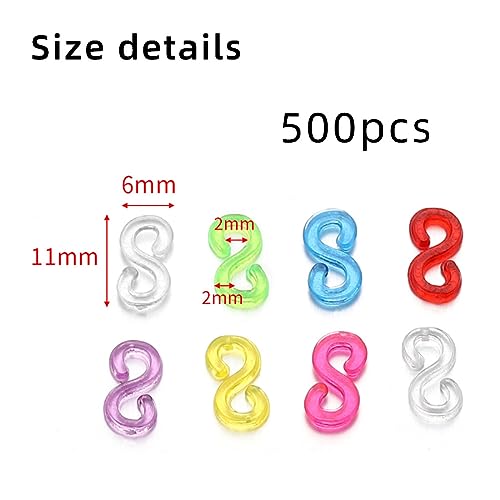 JOCXZI S Clips Loom Bands - 500 Pezzi Trasparente Colorato S-Clips Loom in Gomma Bracccialetto Elastico Band, Fai da Te Clip Loom per Accessori di Gioielli