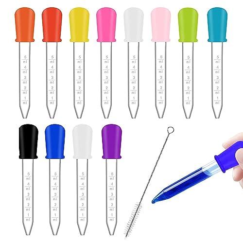 JOCXZI Pipette per Bambini, 12 contagocce in plastica siliconica per Bambini da 5 ml, Pipette in plastica Trasparente con pennelli da 1 Pezzo, contagocce liquidi in Silicone per mangiatoie