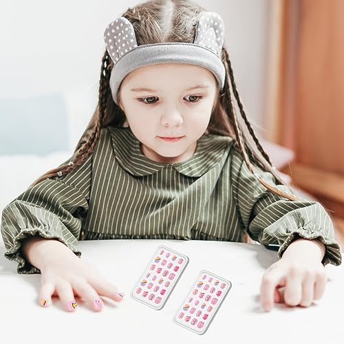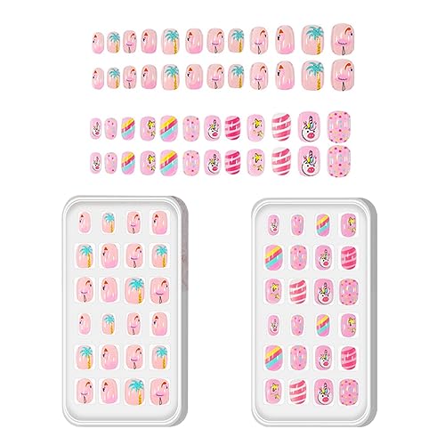 JOCXZI Unghie finte a pressione,48 Pezzi In Scatola Per Bambini Indossabili Per Unghie Rifinite Per Manicure Unghie Finte Stampate A Cartoni Animati Con Unghie Adesive, 2 Scatole
