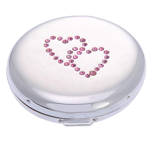 Jodie Rose - Specchio tascabile con motivo cuori di cristalli, colore rosa