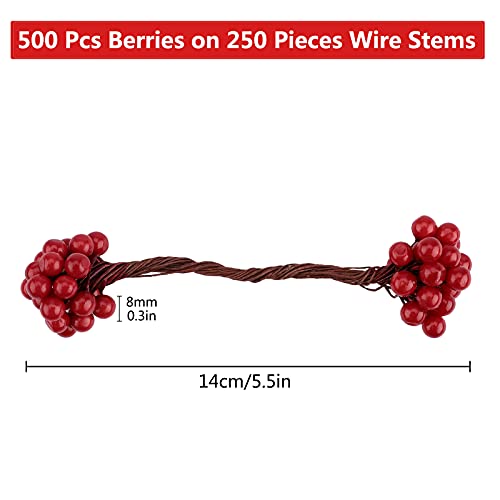 Jodsen Bacche rosse artificiali,250 steli in filo metallico con 500 pezzi di decorazioni natalizie con bacche di agrifoglio,ghirlanda artificiale rami di bacche,decorazioni per alberi di Natal