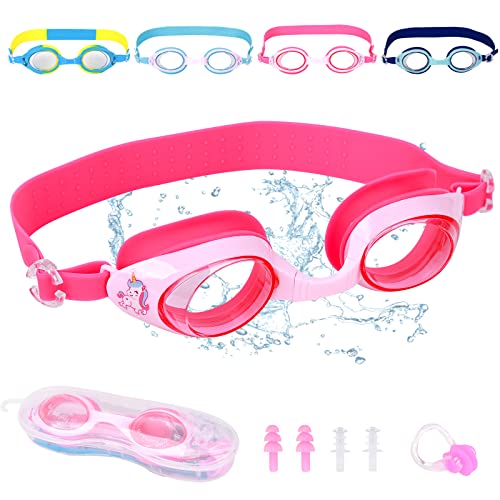 Jodsen Occhialini da Nuoto per Bambini Occhiali Piscina Bambino con Clip per il Naso e Tappi per le Orecchie Occhialini da Nuoto dei Cartoni Animati Anti-Appannamento,Protezione UV(Dinosauri)