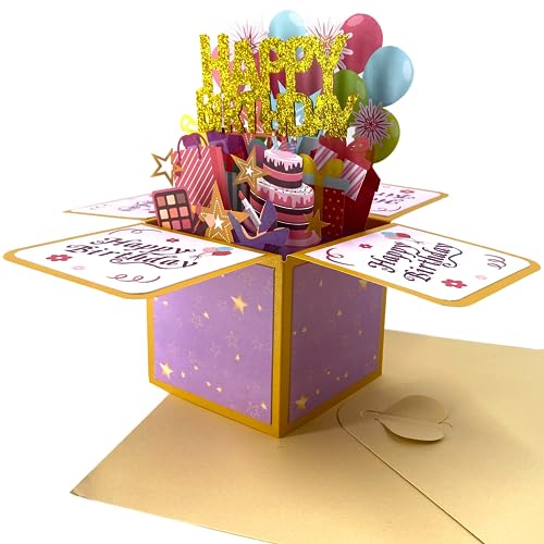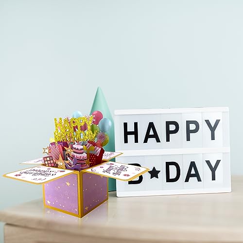 Joechie Bellissimo biglietto di auguri di compleanno in carta colorata, meravigliosa scena di compleanno 3D, scelta migliore per compleanno, adatto per inviare alle persone più vicine, mamma, papà,
