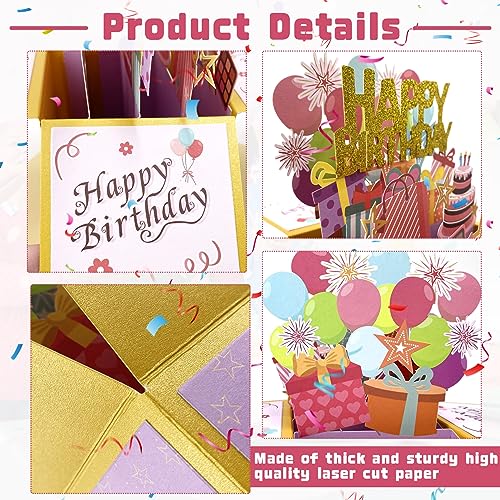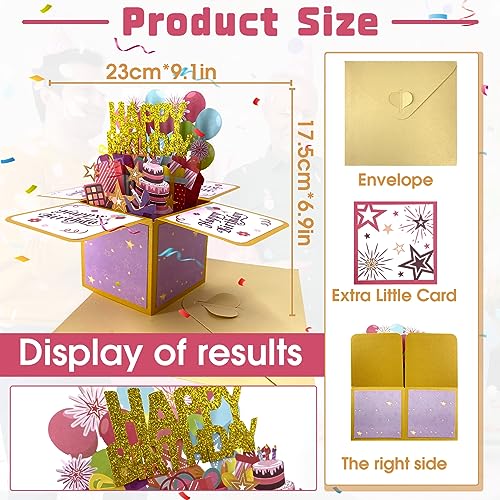 Confezione eccellente: questo biglietto di compleanno misura 17,4 x 8 x 5,6 cm con scritta "Happy Birthday" in tutti gli angoli del biglietto e un piccolo biglietto all'interno per personalizzare con il tuo messaggio. Viene fornito con un'esclusiva busta abbinata per renderlo più cerimoniale quando tu o i tuoi amici lo ricevete.