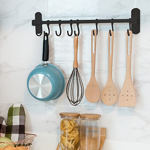 Joeji's Kitchen Portautensili da cucina autoadesivo nero, barra portautensili da cucina in alluminio da 40 cm con 8 ganci, barra portautensili salvaspazio, multiuso bagno, garage, armadi o cucina