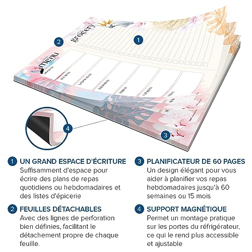 Joeji's A5 Lista Spesa Magnetica da frigo e menu settimanale planner - Elegante - 60 fogli perforati - Strumento per organizzare la lista della spesa pratico ed elegante